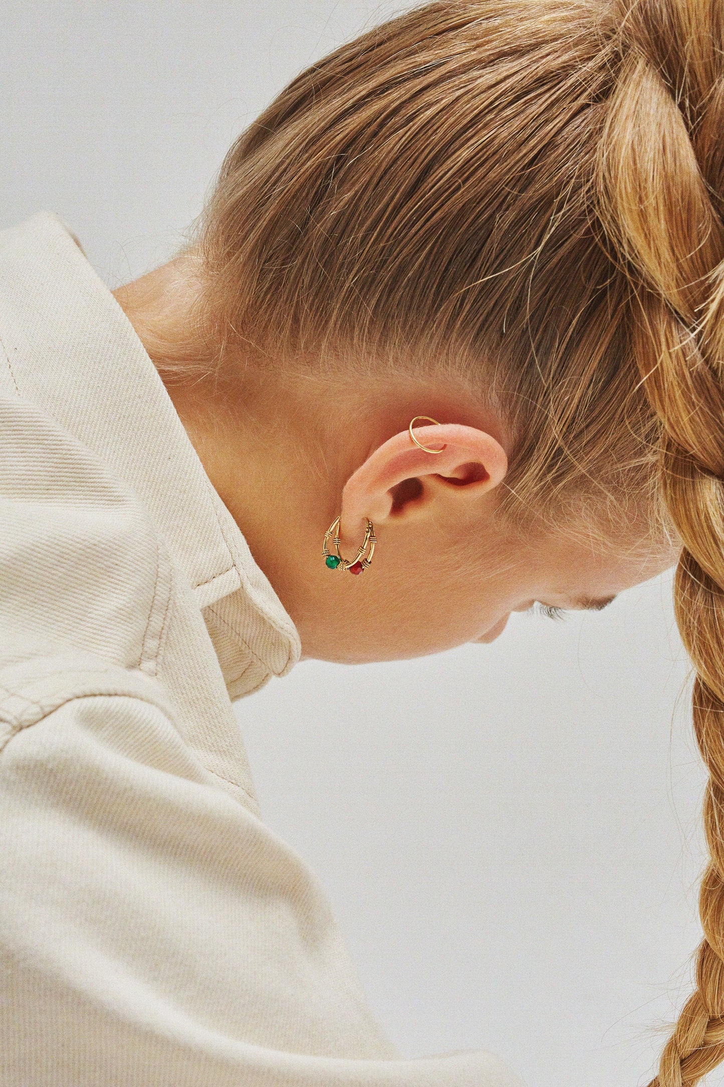 ZINC es un par de pendientes de oro vermeil, engastados con una piedra semipreciosa (ónix verde oscuro).