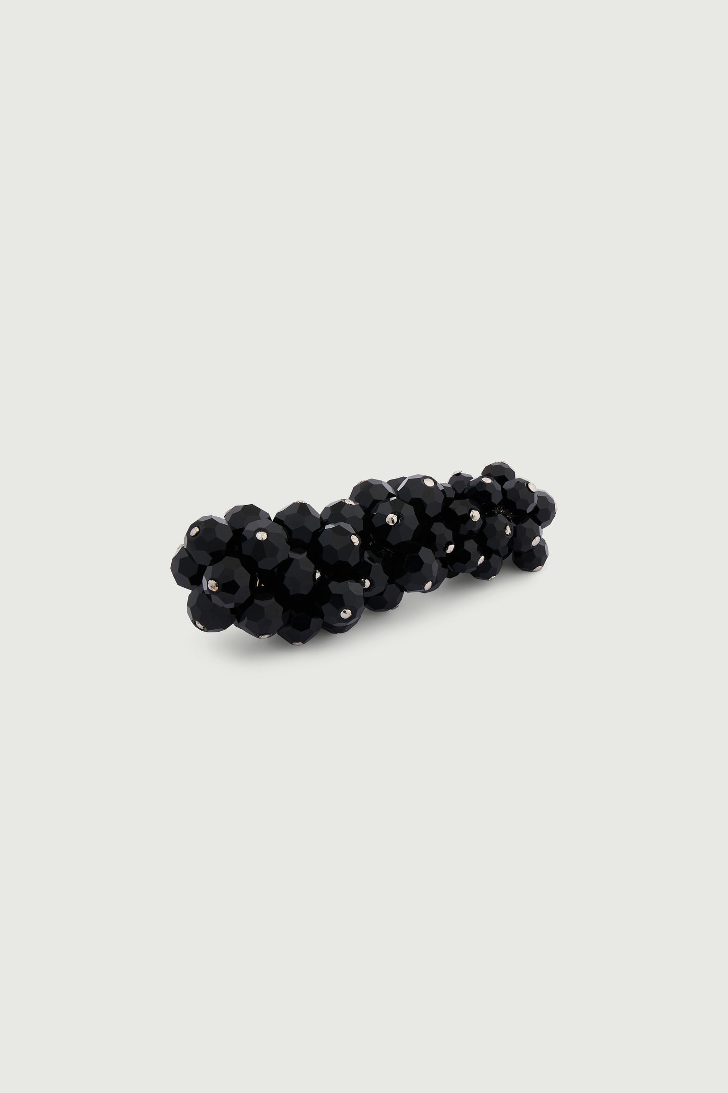 MARY es un broche de cuentas de cristal facetado negro que recuerda a una idea de racimo. Puede lucirse de diversas formas, en el cuello de una camisa o en el bolsillo del pecho de una americana, y dará a sus siluetas un toque distintivo.