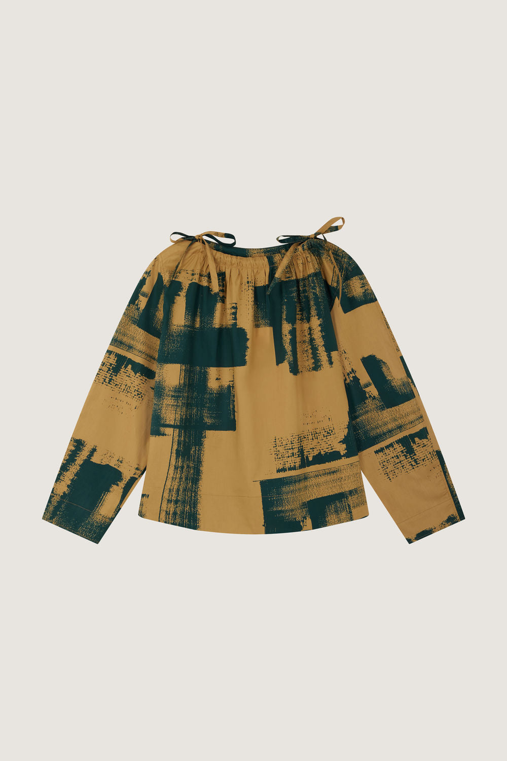 Blusa de popelina de algodón estampada azul y beige