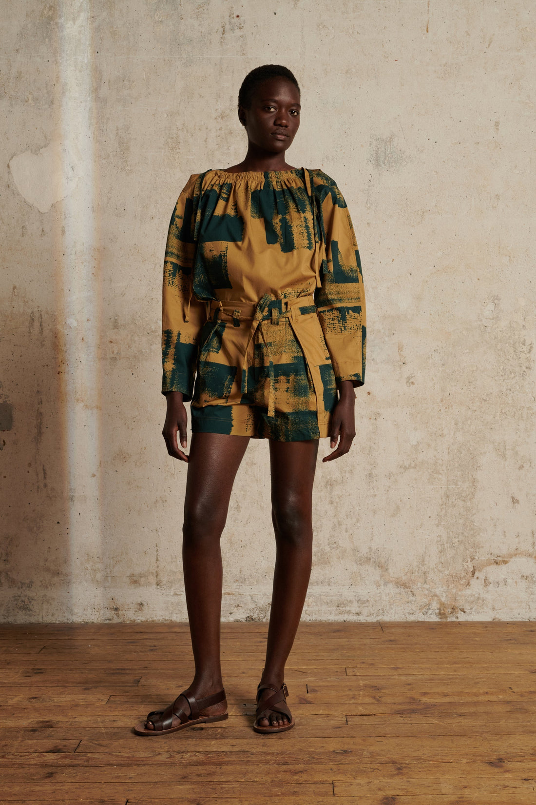 camisa uki Blusa de popelín de algodón estampada en azul y beige