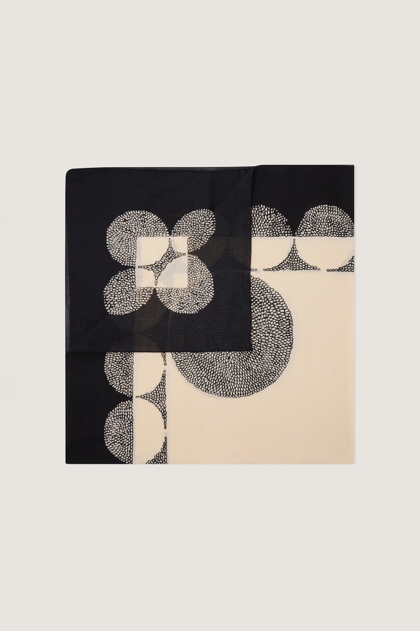 Fular de velo de algodón estampado «Pochoir» crudo/negro
