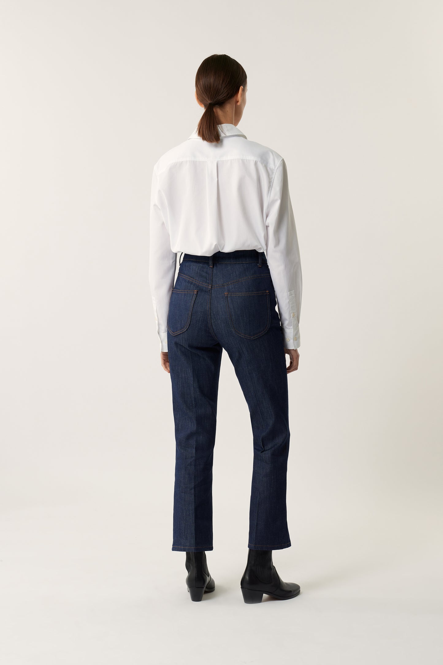 FRANCISCO es nuestro vaquero atemporal con corte "trompeta". Está diseñado ajustado al cuerpo, acampanado en la parte inferior de las piernas y corto en el tobillo. Ofrece una silueta esculpida al estilo de los años 70, atemporal y casual.