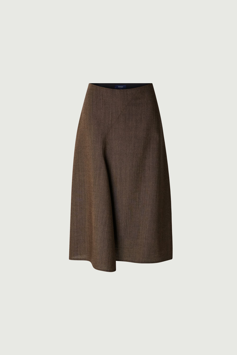 Falda midi en lana marrón jaspeada marrón jaspeado