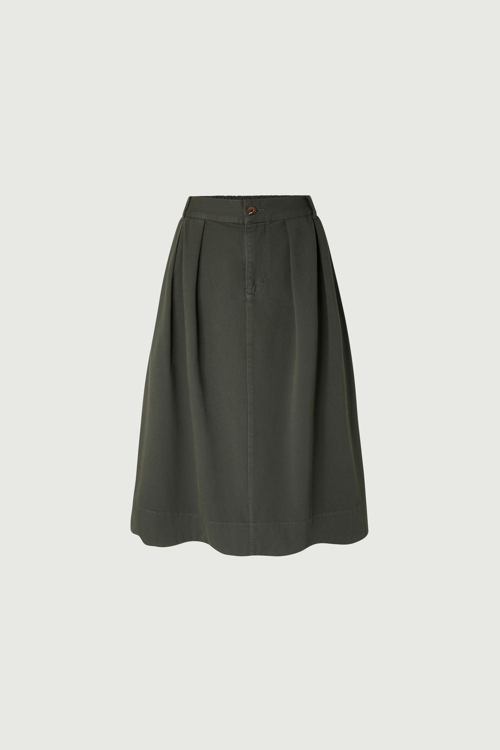 VALETTI es una falda de algodón y lino. Su corte en forma de trapecio favorecedor, junto con una cintura alta, crea una silueta refinada y cómoda. Perfecta para un look tanto práctico como elegante.