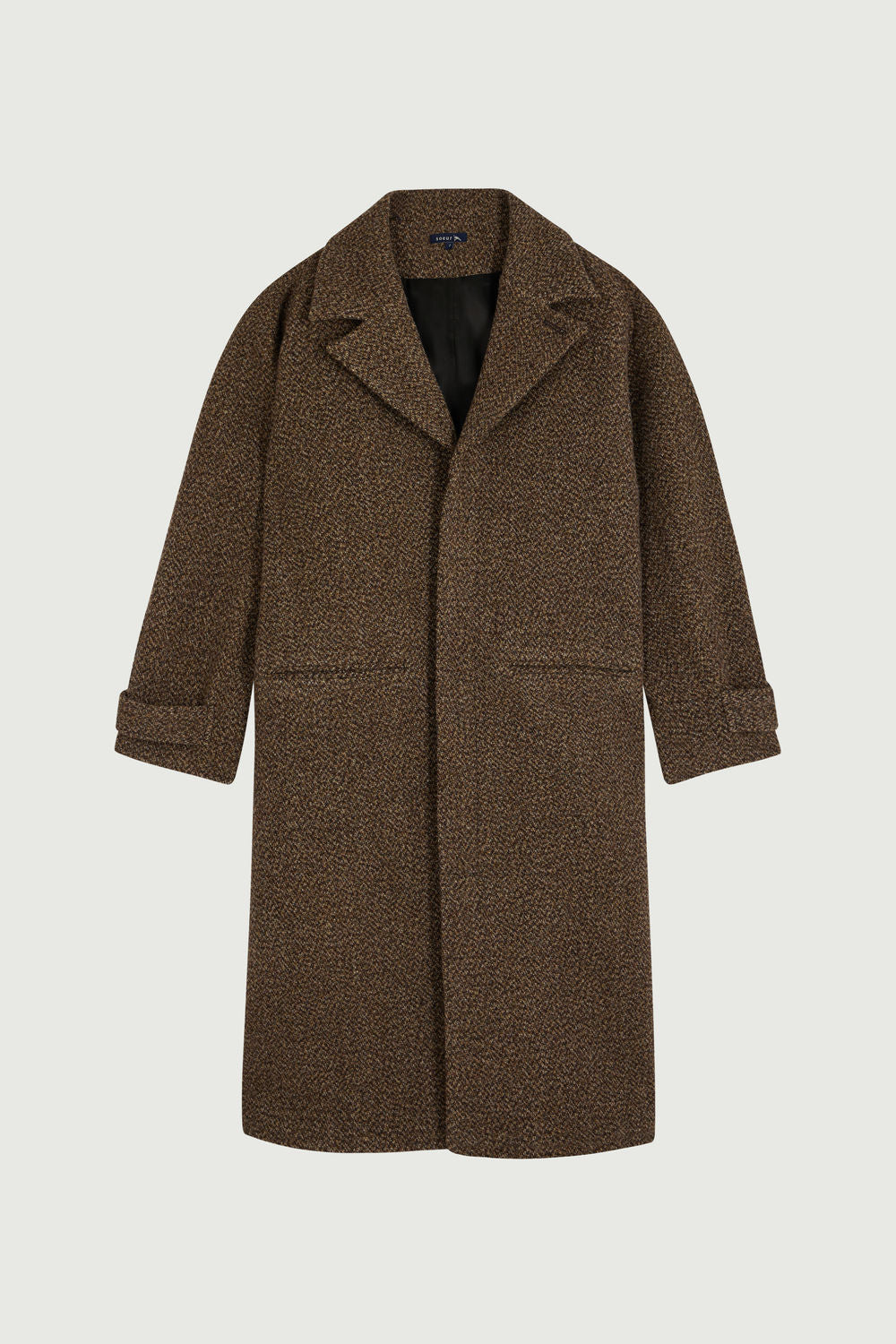 BRIGHTON es un abrigo de corte amplio en tejido de lana. Con mangas ranglan que suavizan la silueta, se puede llevar con el cuello abierto o cerrado ofreciendo diferentes estilos. La apertura con tapeta de botones oculta y los dos bolsillos ribeteados añaden un toque depurado. Falsamente liso, se combina fácilmente con los colores de temporada.