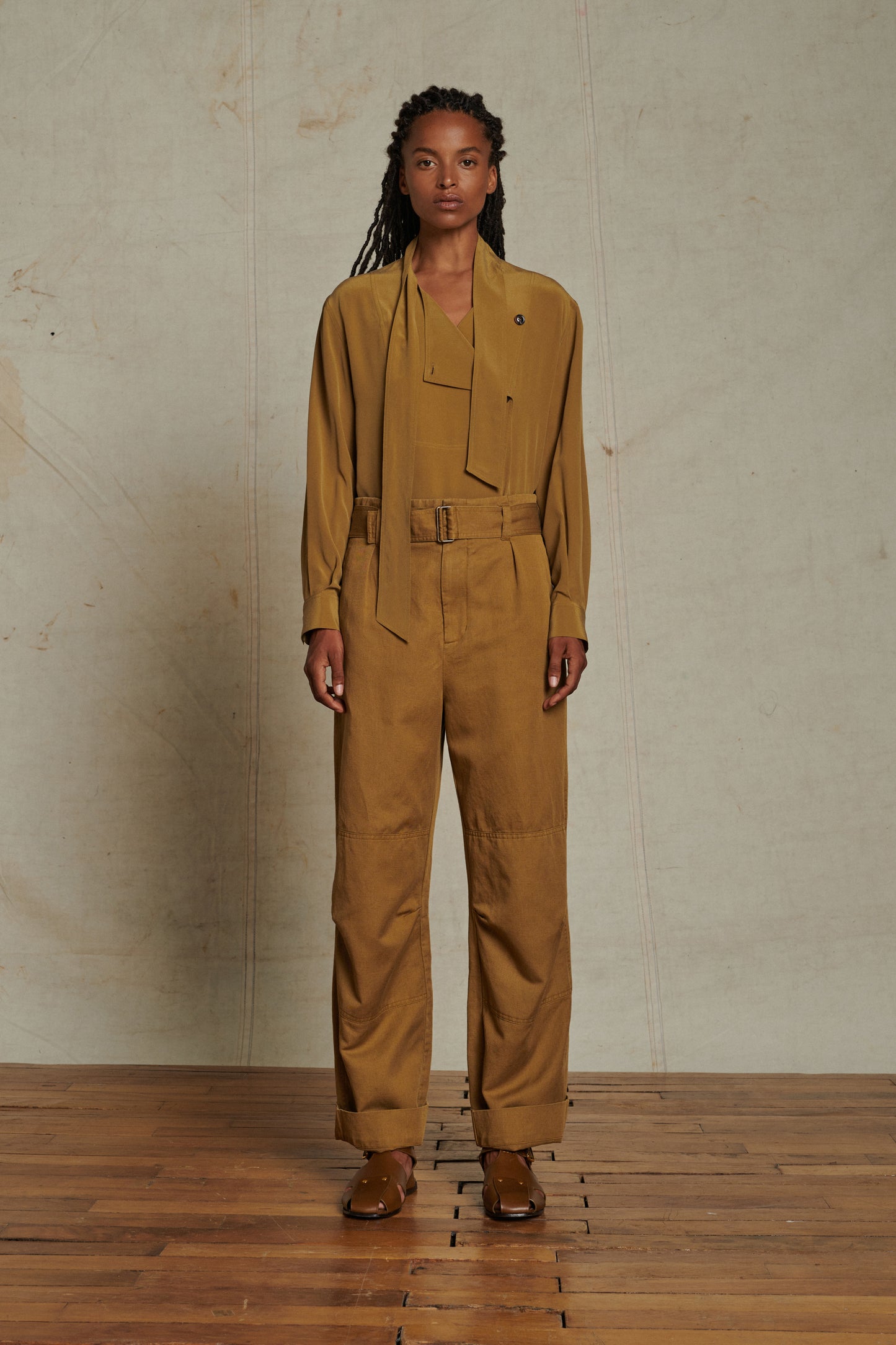 Esta mezcla de algodón y lino da como resultado un tejido suave, fino y ligero, ideal para llevar durante la temporada de primavera-verano. Técnica de "lavado en prenda": el producto se lava una vez hecho para obtener una prenda suave, casi descolorida, como si fuera una prenda vintage ya usada.