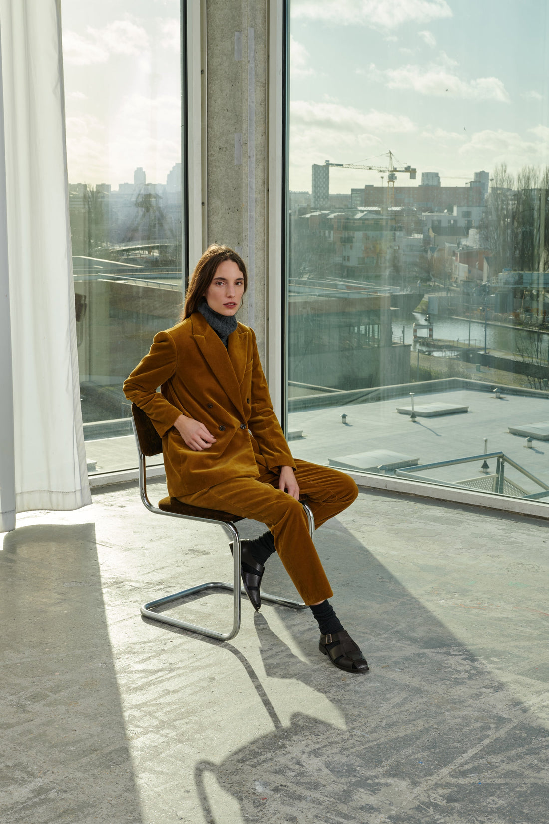 Pantalones de terciopelo liso - Pantalón de pitillo recto- Pliegue marcado a lo largo de la pernera- Dos bolsillos italianos en la parte delantera- Un bolsillo ribeteado en la parte trasera
