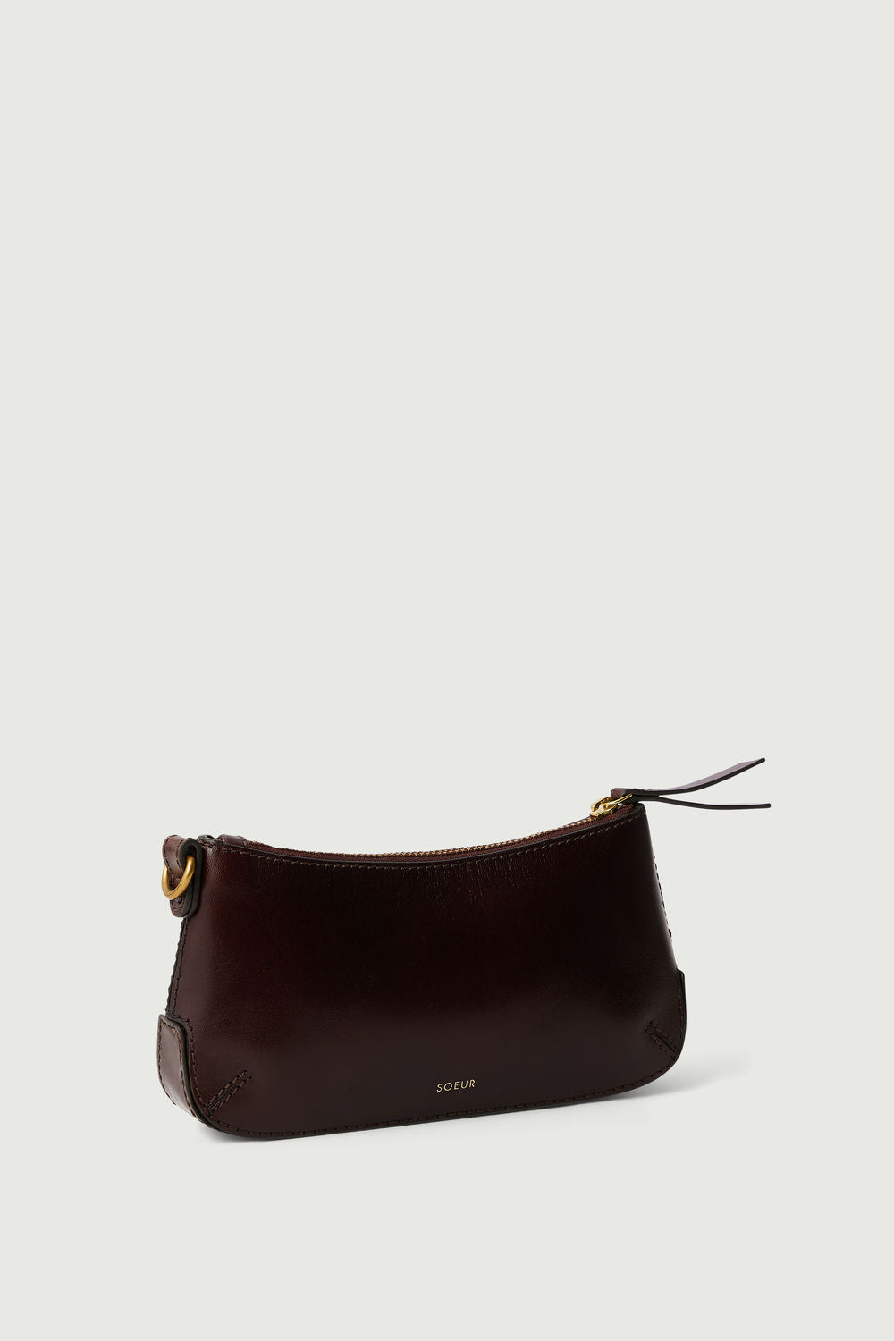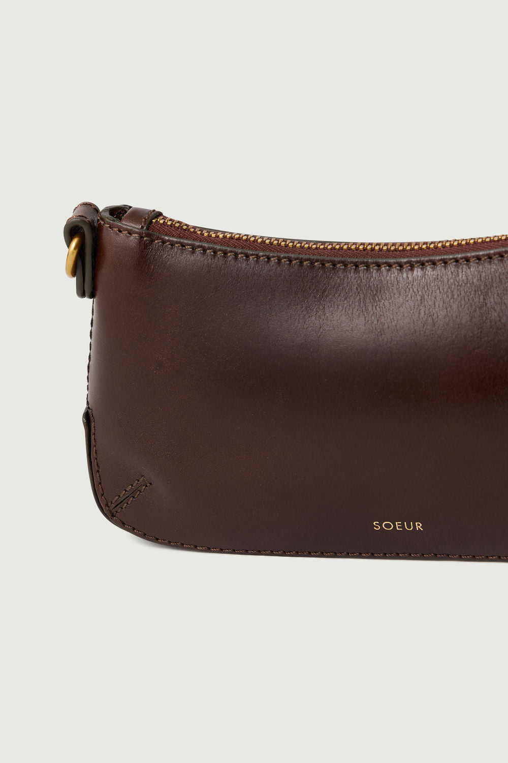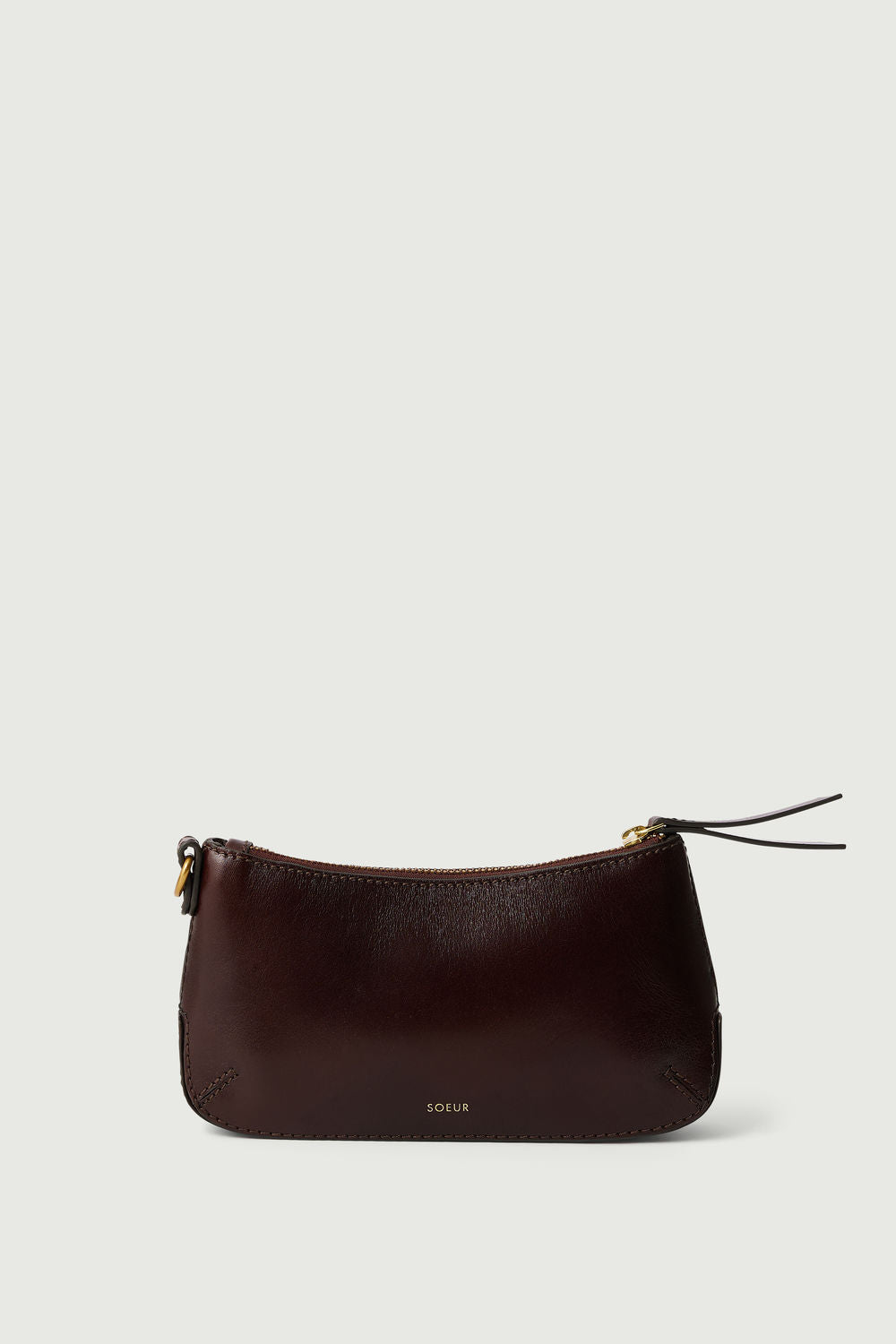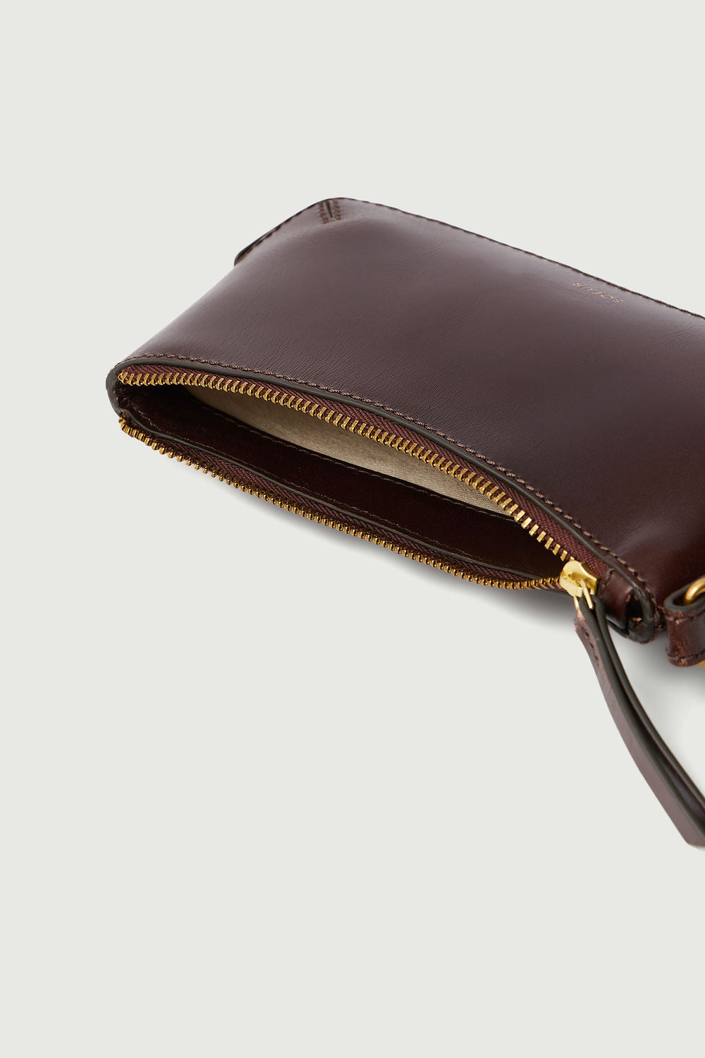- Monedero con cremallera en cuero brillante marrón