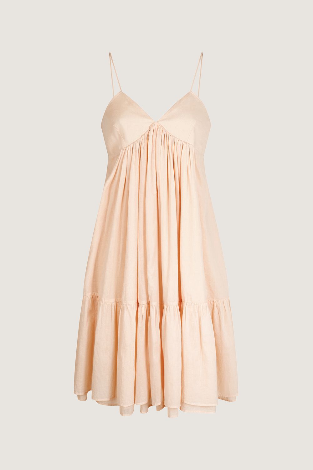 à porter tout le temps selon l’accessoirisation. Le très beau volume est créé par des jeux de volants et de fronces qui coulissent sur les fines bretelles. Avec son très beau décolleté dos