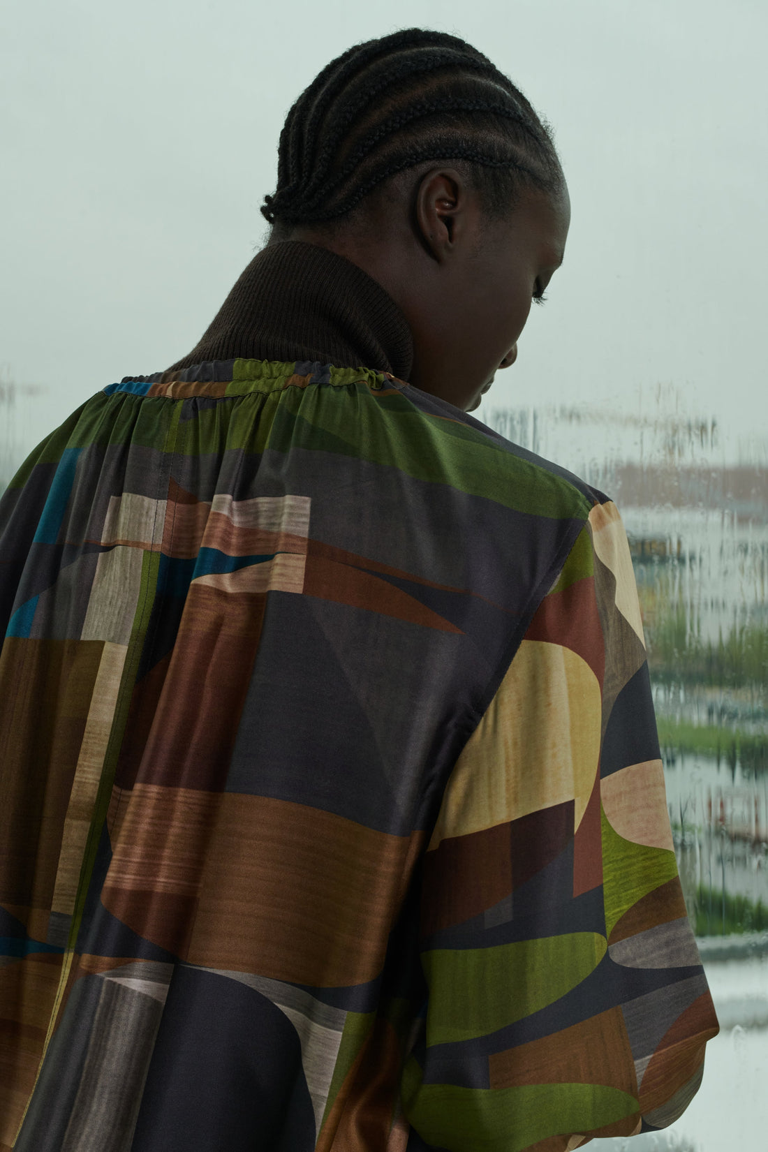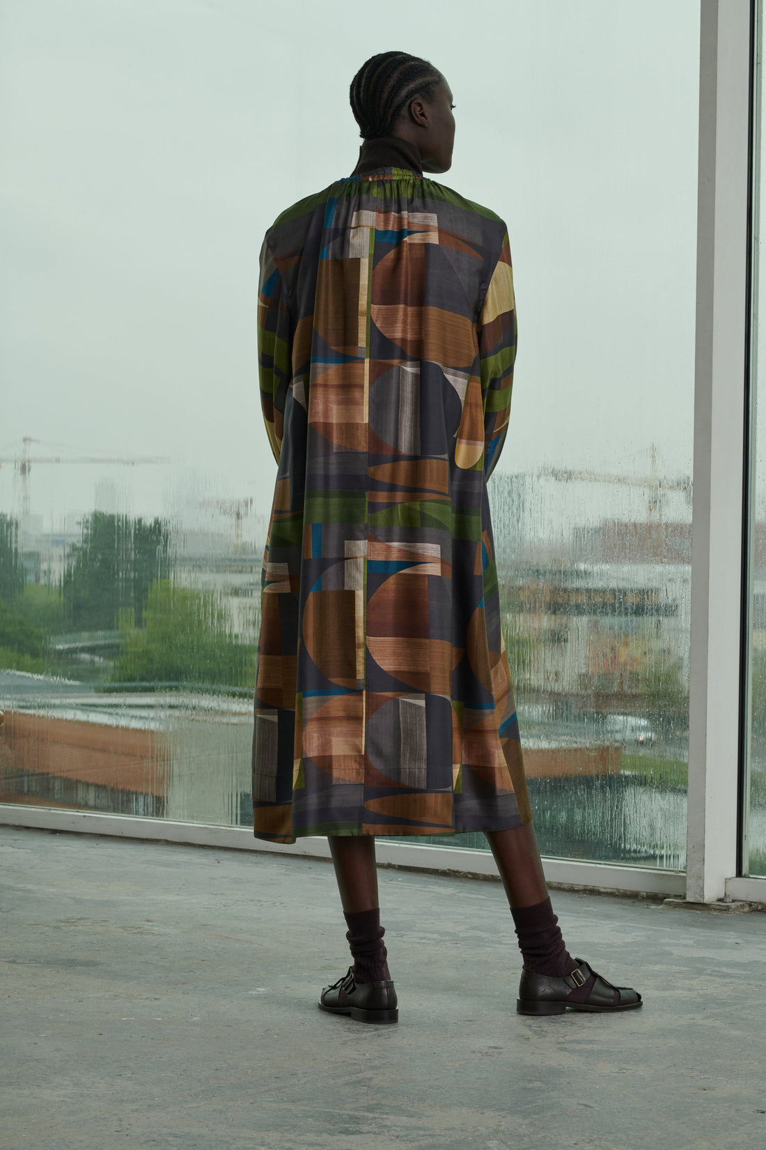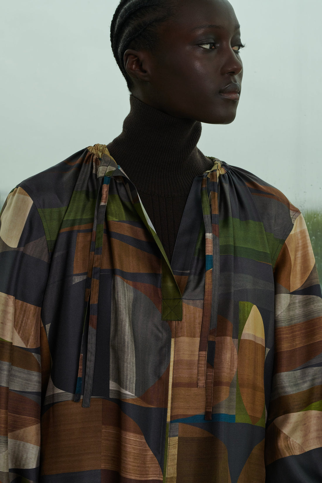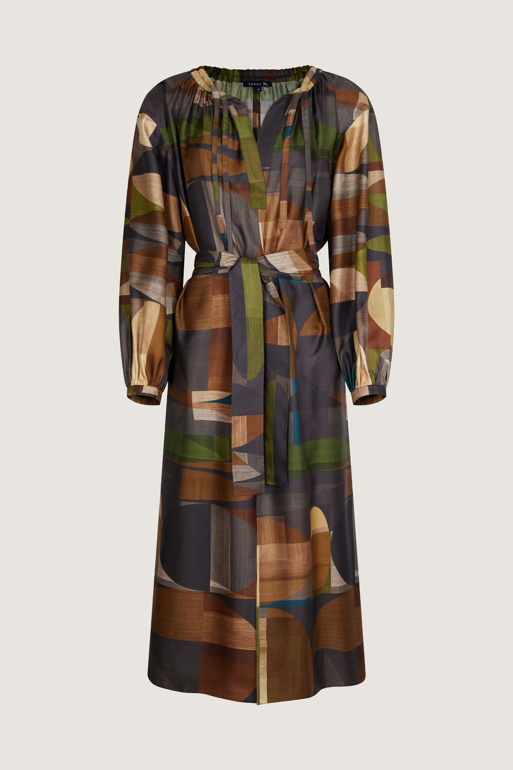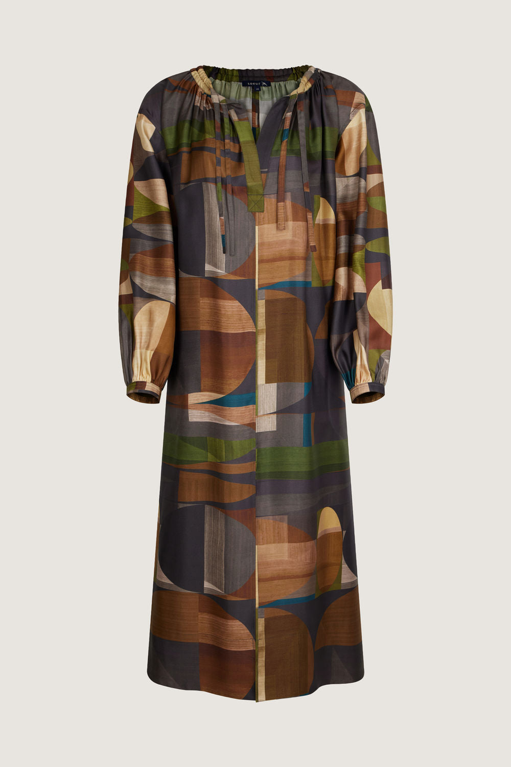 vestido vanzy Vestido amplio de sarga de seda estampada