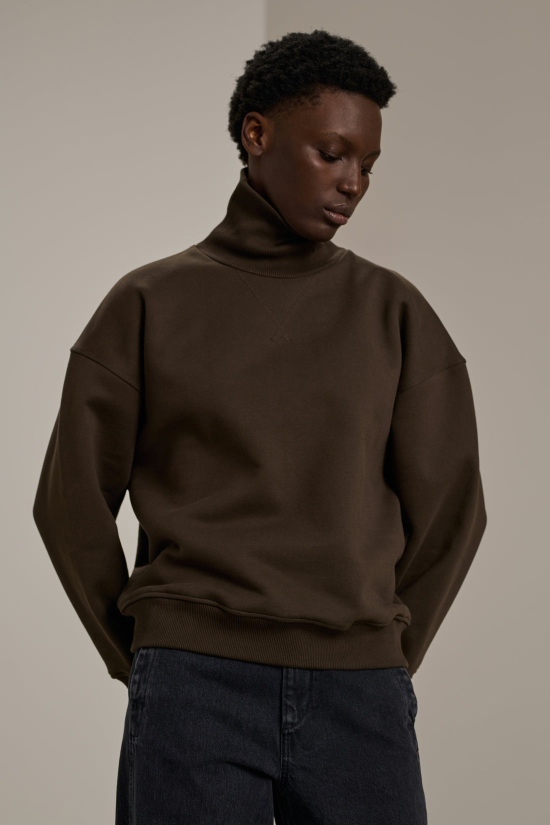 VITO es una sudadera cuello alto en felpa jaspeada. Su corte recto y amplio envuelve tu silueta con suavidad y libertad. Es una mezcla perfecta de confort y estilo que se convertirá en un imprescindible de tu guardarropa.