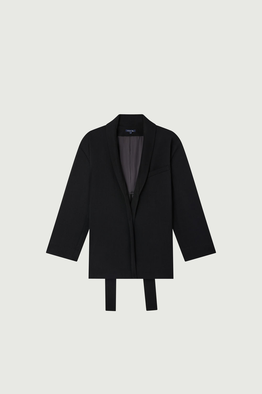 COME es una chaqueta en tejido de polvo ligero de un tipo novedoso. Con un corte tipo "bata" desenfadado, se realza por el uso de un tejido elegante.